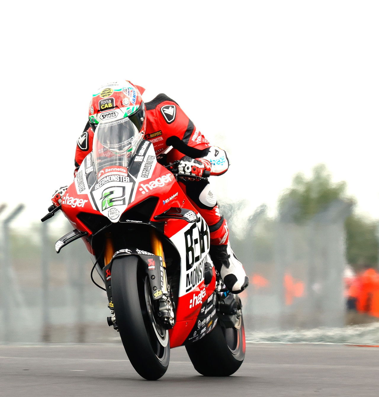 The BeerMonster Ducati rider seemed to have similar issues to the previous races, running wider in corners, but clearly had the pace to lead.
